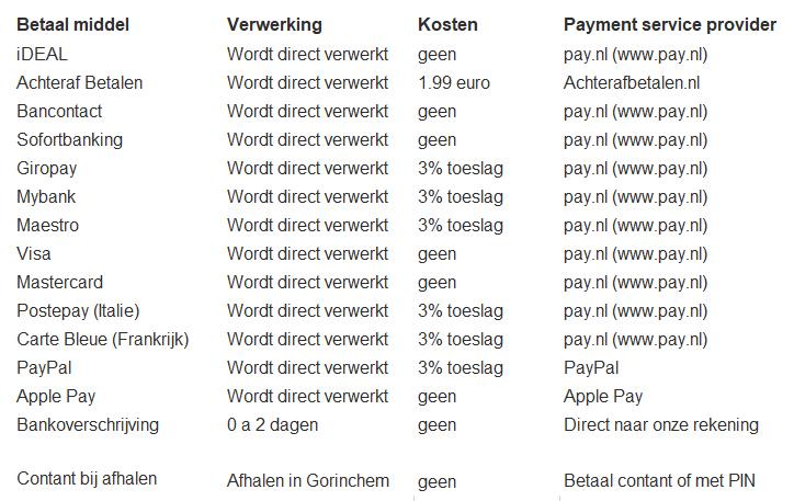 Betallings mogelijkheden: